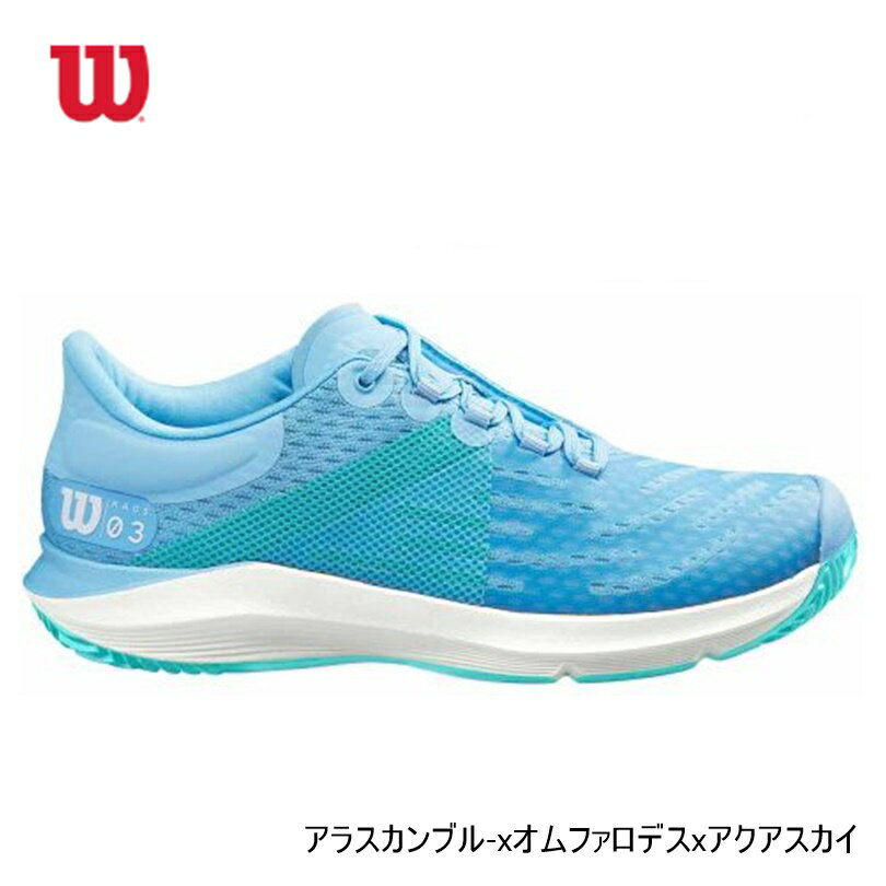 ■カラー アラスカンブル-xオムファロデスxアクアスカイ ■サイズ:22.0-26.0cm(0.5cm刻み) ■幅:E ■ヒールドロップ :9mm ■重さ:平均263g (Size 24.0cm) ■サーフェイス:オールコート [検索文言] Wilson / ウイルソン / テニスシューズ / テニス / シューズ / テニスフットウェア / オールコート用 / ケイオス / KAOS / レディース / スポーツ / 部活動 / トレーニング / ウィルソン